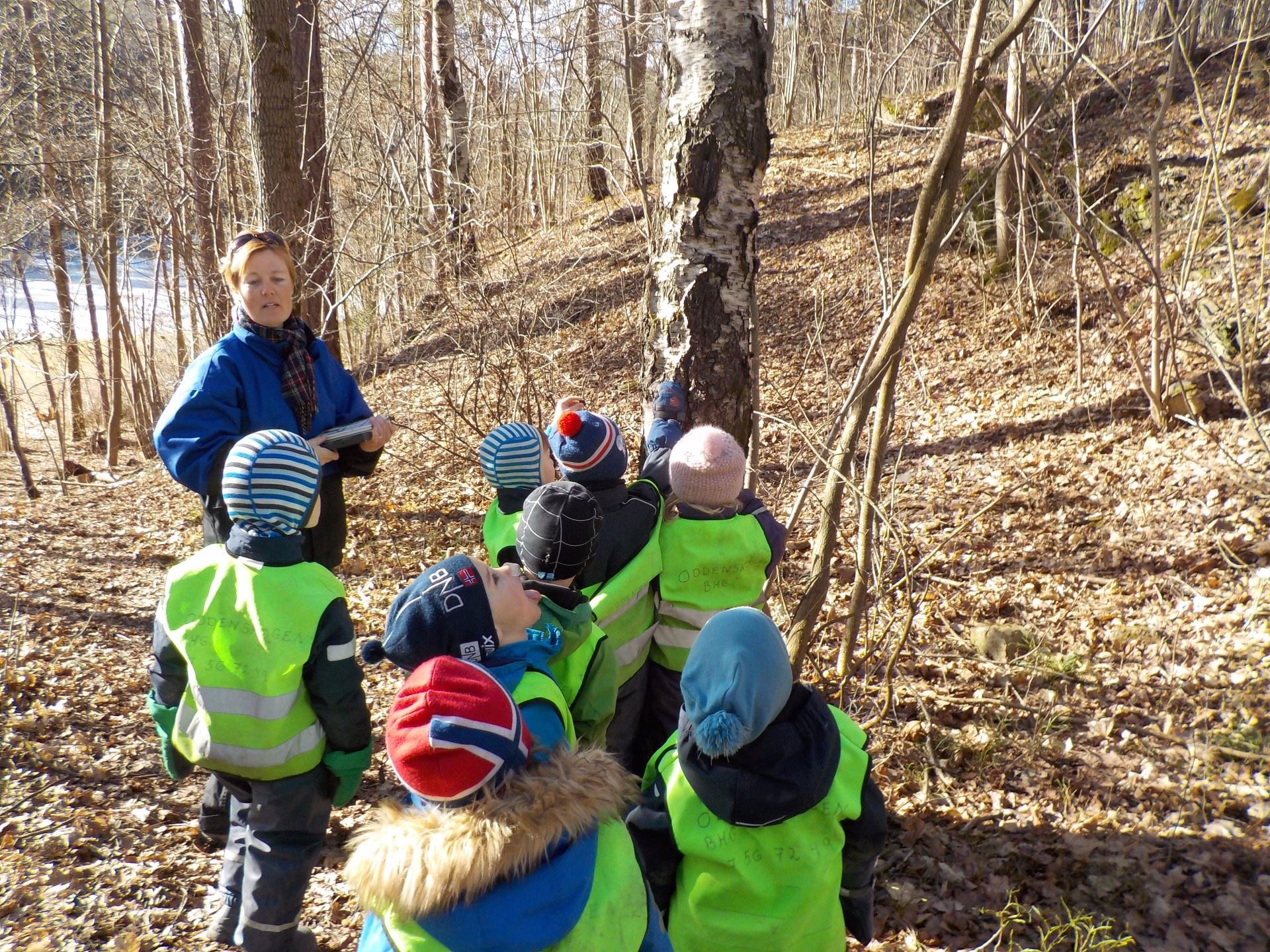 Dette er vårt nærmeste turområde. Ligger syd for barnehagen med egen port. Her bygger vi hytte, klatrer i trærne, har samlingsstunder rundt bålet. Barna lager mat her og vi nyter medbrakt niste. I skogen er det mye dyreliv, blant annet ekorn, hakkespett,annen fugl og rådyr. Vi har miljøprosjekt i Alfredskogen da vi graver ned nedbrytbare og ikke nedbrytbare elementer som overvintrer og blir gravet opp til våren.